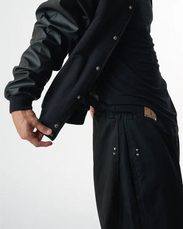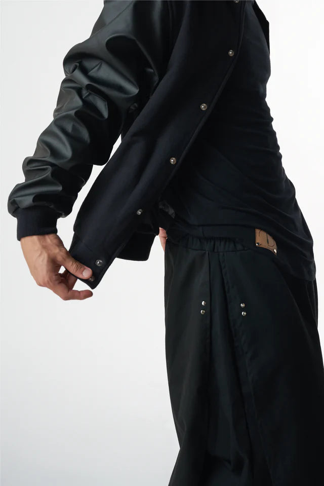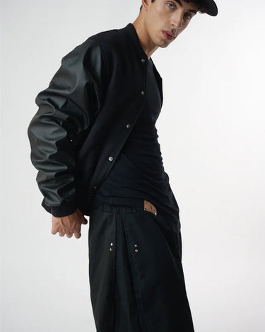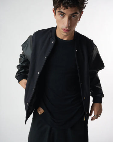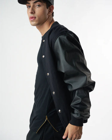 ‣ Bomber color Negro con mangas negras de Eco cuero